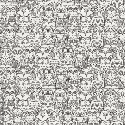 Seamless doodle owl pattern. Cute print for kids, scrap and other