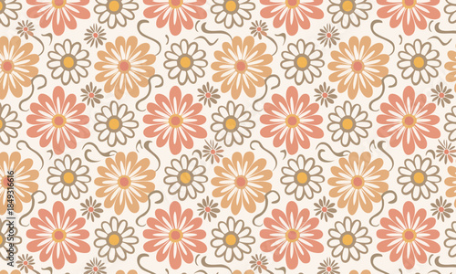 pattern, seamless, floral, flower, terracotta, vector, orange, retro, vintage, daisy, hand-drawn, doodle, background, white, autumn, minimalist, nature, spring, textile, fabric, wallpaper, cute, print, art, illustration, wrapping, botanical, rustic, beige, warm, simple, elegant, decor, chamomile, blossom, 70s, leaf, organic, drawing, graphic, vignetting, tile, repeat