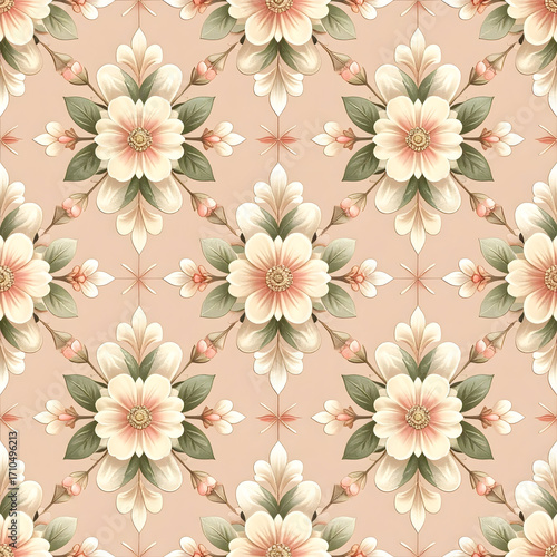 floral pattern, flower, pattern, seamless, ornament, leaf, bloom, decoration, botanical, nature, elegance, vintage, retro, artistic, repeating, design, decorative, illustration, pastel, artwork, background, texture, print, blossom, bud, symmetry, arrangement, aesthetic, motif, graphic, style, textile, fabric, surface, craft, art, classical, traditional, visual, intricate, detailed, organic, element, shape, structure, composition, harmony, delicate