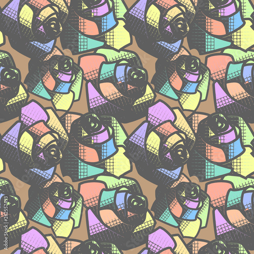 Seamless geometric abstract colored pattern with roses. Vector clipart.
