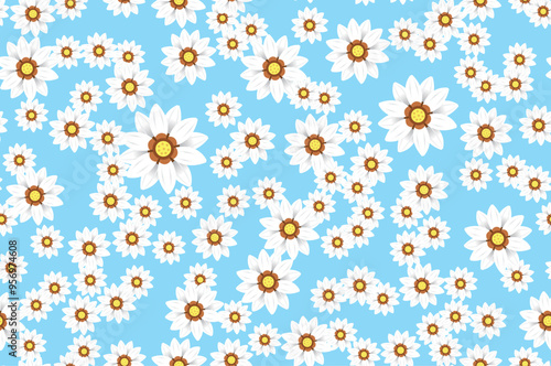 Seamless geometric floral pattern with vintage daisy flowers for fabric or wallpaper.
