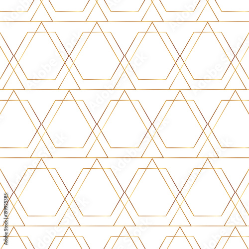 Seamless gold line geometric modern pattern. Background with triangles and hexagons. Golden texture.