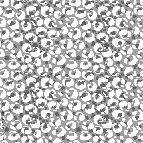 Seamless gray leopard pattern. Animal skin grunge texture. Vector illustration.