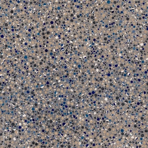 Seamless modern abstract terrazzo pattern swatch. High quality illustration. Random trendy confetti design for textile print or interior design or floor. Colorful micro speckle tile mosaic material.