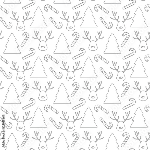 Seamless outline pattern with festive Christmas and New Year elements. Perfect for holiday cards, wrapping paper, packaging, textile, and winter decoration.