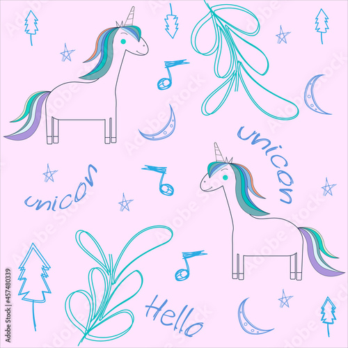 Seamless patern with cute unicorn.Hand drawing unicorn.Vector illustrator.