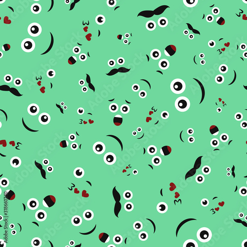 pattern, vector, seamless, background, wallpaper, emoticon, cute, smiley, happy, crazy, tongue, face, icon, laugh, cartoon, mouth, fun, illustration, smile, angry, funny, comic, sad, love, childish, expression, cry, isolated, surprise, kiss, joy, human, eye, flat, cool, cyberspace, character, people, clip art, caricature, message, emotion, chat, design, nubes, set, green, emotion