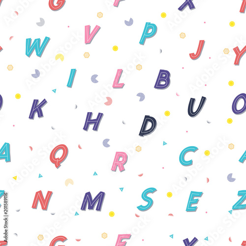 Seamless pattern - the Latin alphabet. Children's colorful style, cute letters.