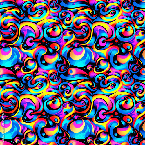 Seamless pattern illustration featuring intricate swirling spirals in vibrant colors