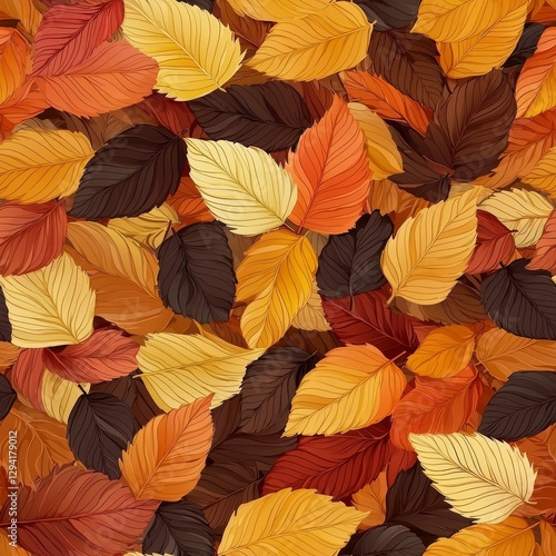Seamless pattern of autumn leaves nature background digital wallpaper vibrant environment top-down view concept