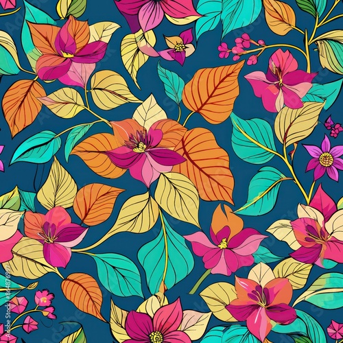 seamless pattern of colorful batik bougainvillea, Generative AI