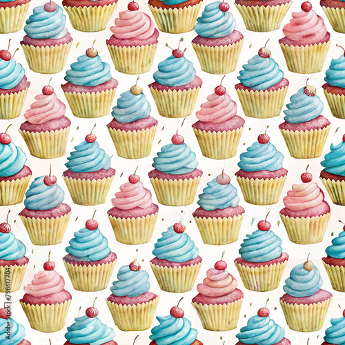 Seamless pattern of cup cake isolated on white background. AI Generative