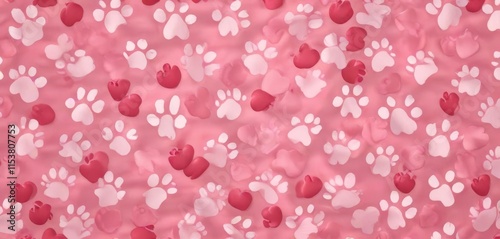 Seamless pattern of dog paws on a heart-shaped background, ideal for Valentine's Day decor, background, heart