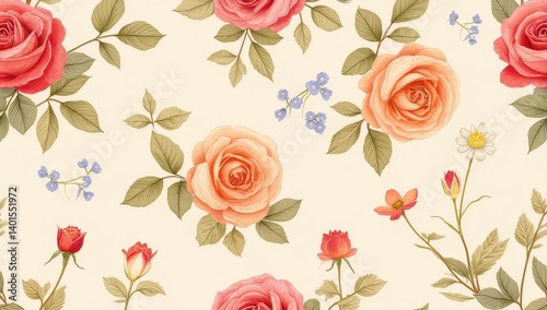 rose, rose, floral, seamless, pattern, pastel, pink rose, flower, flower, blossom, bloom, botanical, illustration, design, background, texture, wallpaper, fabric, print, textile, art, vintage, romantic, elegant, delicate, soft, pretty, spring, summer, nature, beauty, aesthetic, cream, beige, light, repeating, motif, template, floral pattern, floral arrangement, garden, bloom, flower petals, leaf, greenery, chamomile