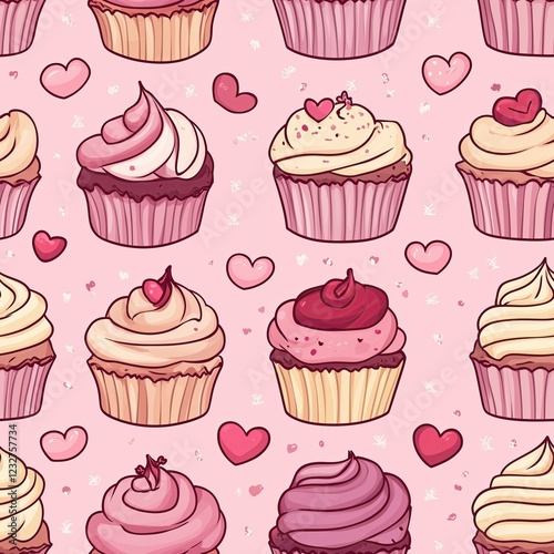 cupcake, pastel, whimsical, illustrated, decoration, cute, various, topping, seamless, delicate, colourful, cake, cupcake, sweet, food, dessert, birthday, muffin, illustration, chocolate, pink, cream, cherry, cup, set, bakery, candy, celebration, pattern, nubes, love, design, cartoon