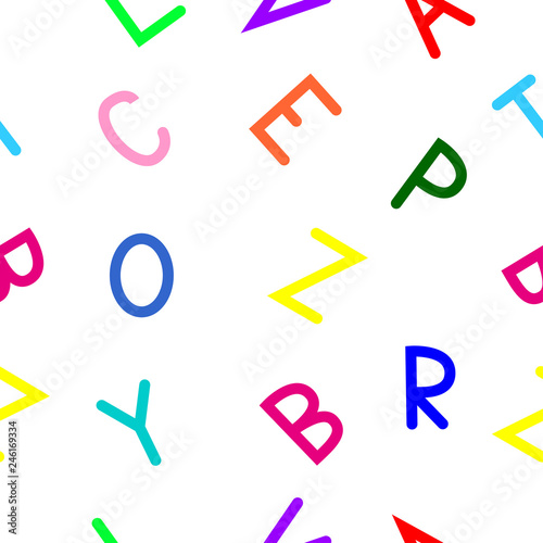 Seamless pattern of some colorful letters of alphabet isolated on a white background.