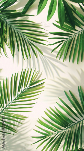 Seamless Pattern of Tropical Green Palm Leaves and Branches Isolated on White