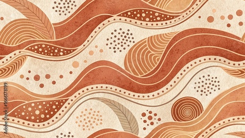Seamless pattern with abstract waves. Hand drawn watercolor background.
