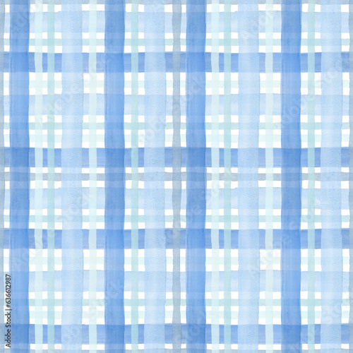 Seamless pattern with blue and blue stripes painted by hand in watercolor, on a white background. Watercolor illustration. Suitable for textile design, wrappers, packaging, accessories, postcards