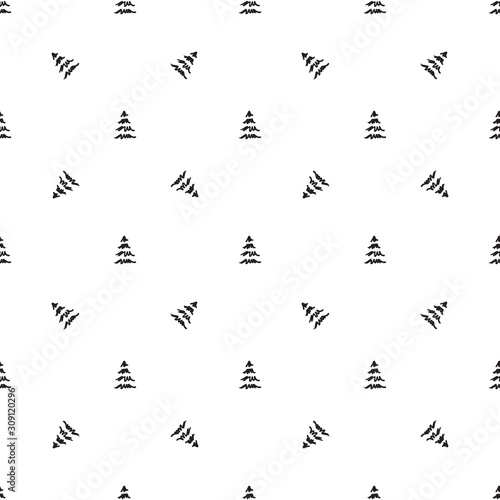 Seamless pattern with christmas trees. Print for design. Black and white illustration