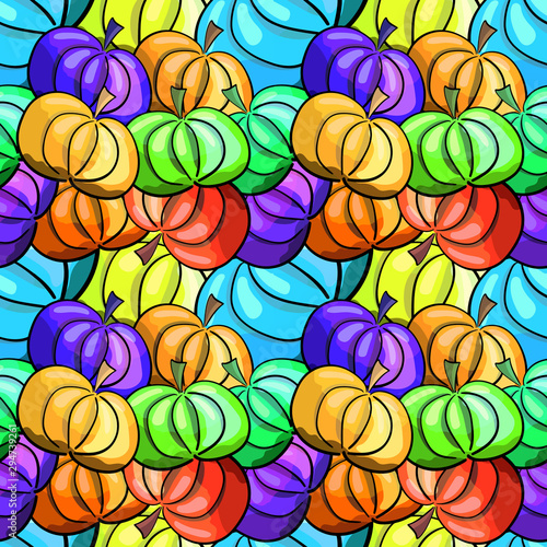 Seamless pattern with coloured pumpkins