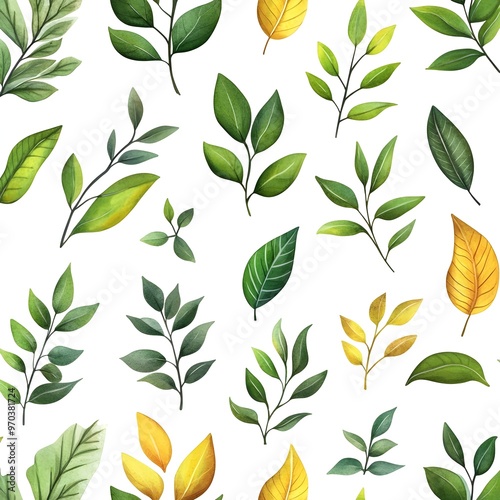 Seamless Pattern with Diverse Natural Leaves on Bright White Background