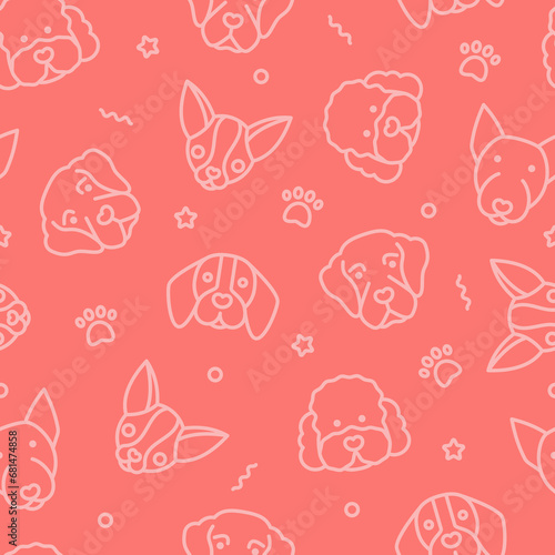 Seamless pattern with dogs. Poodle; golden retriever, bull terrier; chihuahua, beagle thin line icon. Vector illustration.