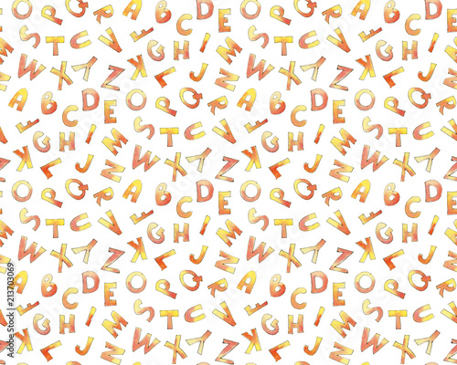 typography, alphabet, word, rudiments, naive, font, symbol, signs, watercolor, doodle, type, character, children, text, element, letter, set, school, calligraphy, design, education, drawing, hand-made, decoration, decorative, style, poster, lettering, art, cartoon, artistic, handwritten, scribble, note, sketchy, simple, merry, invitation, cheerful, colourful, ink, calligraphic, vignetting, yellow, red, orange, seamless, background, wrapping paper, print