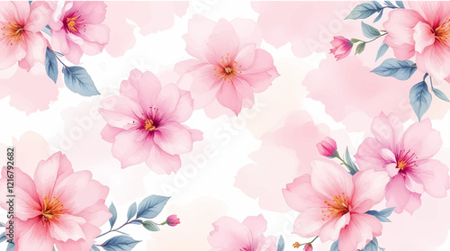 Seamless pattern with Pink flowers painted in watercolor style on a white background, elegant floral design