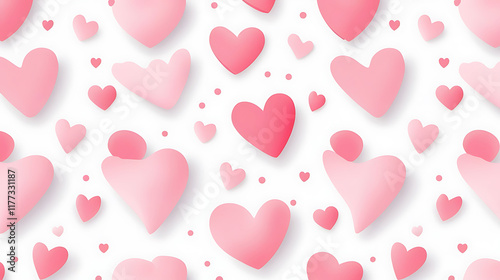 Seamless Pattern with Pink Hearts and Dots on White Background