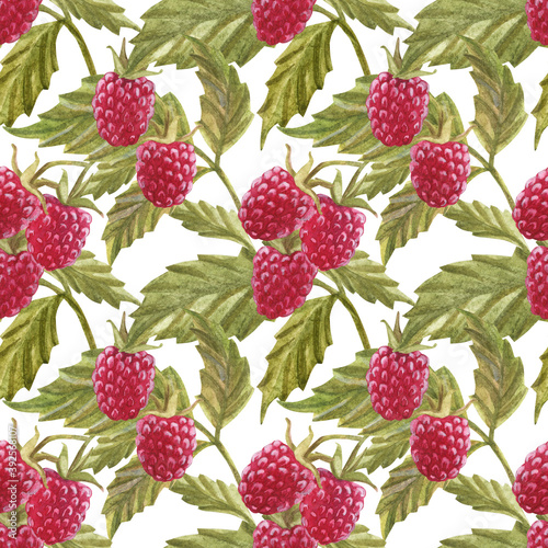 Seamless pattern with .raspberry berry. Watercolor illustration. The print is used for Wallpaper design, fabric, textile, packaging.