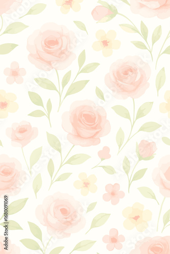 floral, flower, rose, pastel, seamless, pattern, botanical, background, design, textile, fabric, wallpaper, wrapping, cute, sweet, girlie, delicate, romantic, wedding, spring, summer, nature, garden, bloom, blossom, vintage, soft, pink, peach, yellow, green, leaf, watercolor, illustration, print, repeat, decorative, textile design, minimal, aesthetic, light, stylish, elegant, beauty, modern, fashion, natural, fresh, ornamental