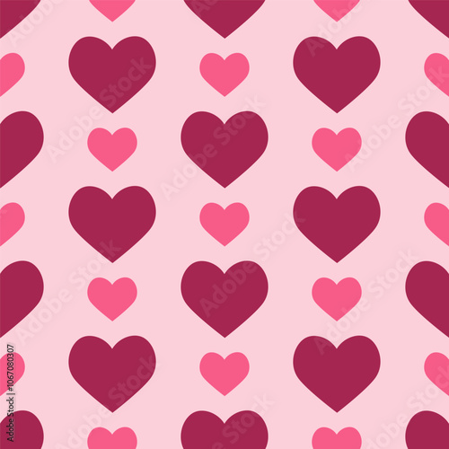 Seamless pattern with simple pink hearts. Template for Valentine holiday design. Vector illustration
