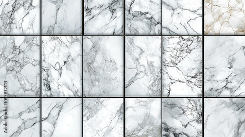 Seamless tile texture of various white marble patterns.