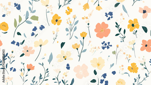 Seamless tiny floral pattern with hand-drawn flowers and pastel colors