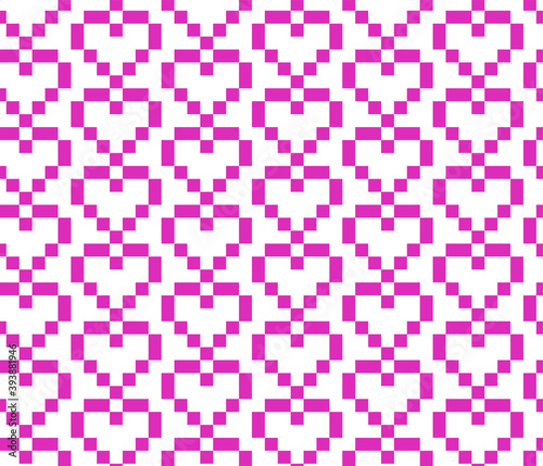 Seamless vector pixel love hearts pattern. Pink Valentine's day background. 10 eps design. For web, cover, wrapping, textile, banner etc.