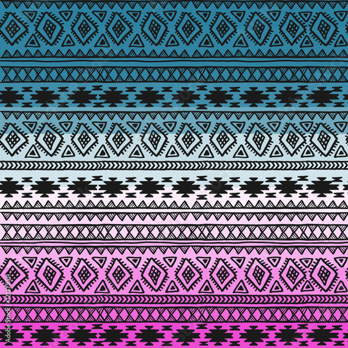 Seamless vector tribal texture. Vintage ethnic seamless backdrop. Tribal seamless texture. Striped vintage boho fashion style pattern background with tribal shape elements.