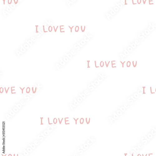Seamless vector wallpaper valentine with superscription I love you. Valenines day minimalistic love pattern