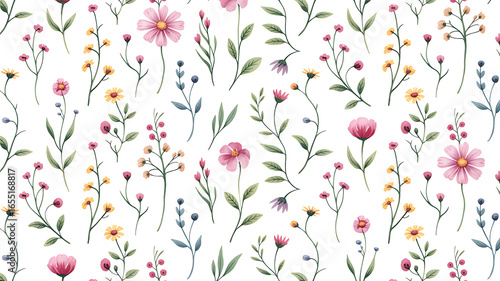 Seamless watercolor floral pattern with pink and yellow flowers background