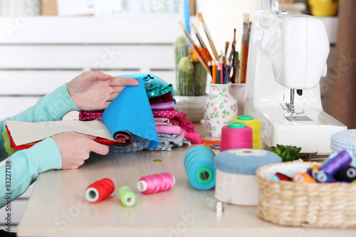 action, art, beautiful, bright, business, close, colours, comfortable, craft, craftsmanship, creative, design, designer, designing, desk, dress, fabric, female, flow, hand, hobby, home, industry, material, modern, needlecraft, needlecraft, occupation, office, place, process, profession, progress, dressmaker, sewing, table, tailoring, thread, tool, up, high-coloured, woman, work, workflow, working, workplace, workshop