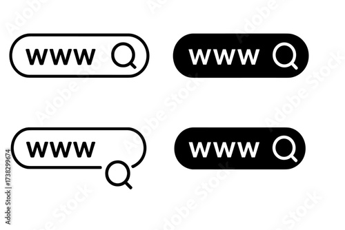 Search bar vector icon set. WWW internet browser element for website, app, UI, UX design. Address and navigation field with magnifying glass symbol. Search engine concept.
