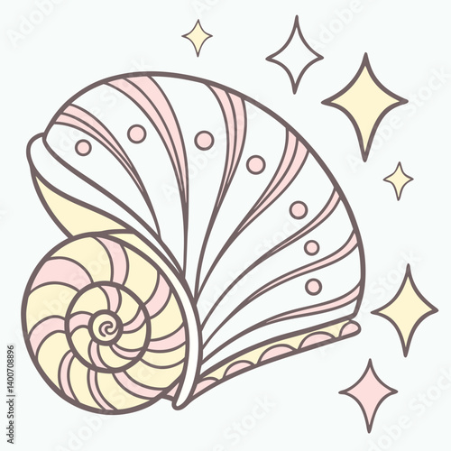 Seashell emoji with soft pastel colors and sparkles