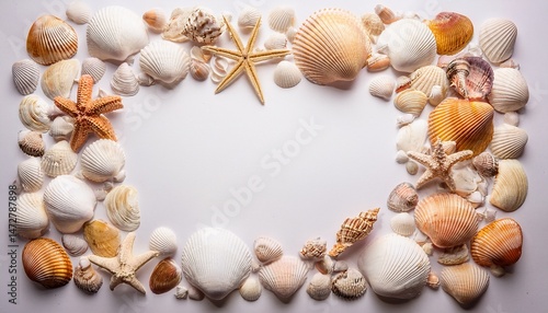 seashell frame white background summer beach ocean nature vacation seashells create a beautiful frame perfect for text or images evokes feelings of relaxation and tranquility