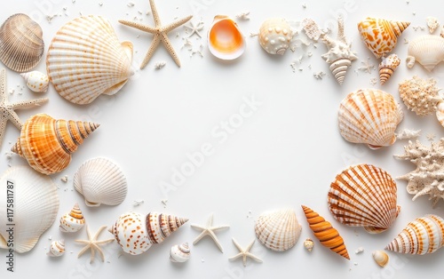 seashell, starfish, summer, beach, vacation, ocean, border, frame, background, decor, shell, coastal, marin, tropical, white, sand, texture, pattern, design, nature, summer, holiday, relaxation, travel, seascape, ornament, collection, nautical