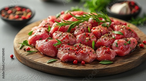 meat, cube, seasoned, herb, cooking, preparation, food, receipe, ingredient, culinary, photo, delicious, tasty, healthy, dinner, lunch, dinner, fresh, raw, protein, diet, nourishment, spice, pepper, rosemary, thyme, garlic, kitchen, table, background, epicure, organic, rustic, style, image, stock, photo, visual, plate, board