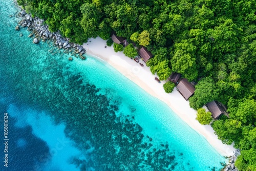 Secluded beach with turquoise water surrounded by tropical trees symbolizing privacy relaxation and natural beauty in an exotic vacation setting