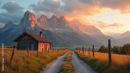 sunset, mountain, landscape, nature, scenic, rural, countryside, peaceful, tranquil, serene, calm, quiet, solitude, remote, secluded, wilderness, majestic, breathtaking, golden hour, evening, dusk, sky, cloud, road, path, way, journey, travel, adventure, exploration, escape, freedom, relaxation, inspiration, beauty, picturesque, idylli, charming, cosy, home, shelter, refuge, habitat, environment