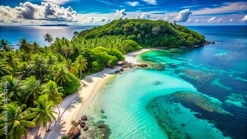 Secluded Tropical Beach Aerial View: Turquoise Water, Golden Sand, High-Resolution Stock Photo