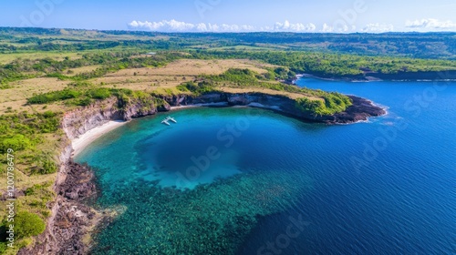 aerial view, tropical island, coral reef, ocean, blue water, summer getaway, tranquil scene, seascape, water, beach, sand, rock, vegetation, sky, sunlight, cloud, horizon, sunny day, landscape, scenic view, travel, vacation, holiday, paradise, serenity, relaxation, escape, adventure, exploration, discovery, nature, beauty, wonder, aerial, view