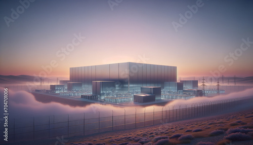 Secure Futuristic Facility in Tranquil Dusk Setting